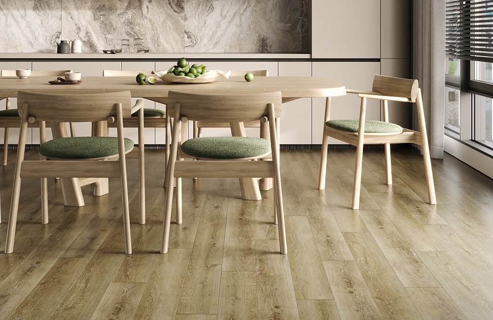 В новой коллекции представлены трендовые оттенки натурального дерева. Особое внимание уделено текстуре: пол выглядит живым, тёплым и уютным.