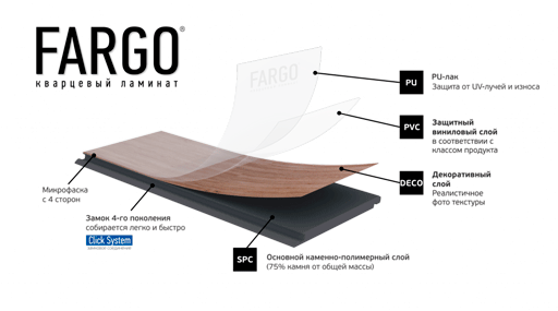 Сочетая в себе все эти важнейшие факторы, кварцевый ламинат Fargo полностью соответствует показателю «цена-качество».